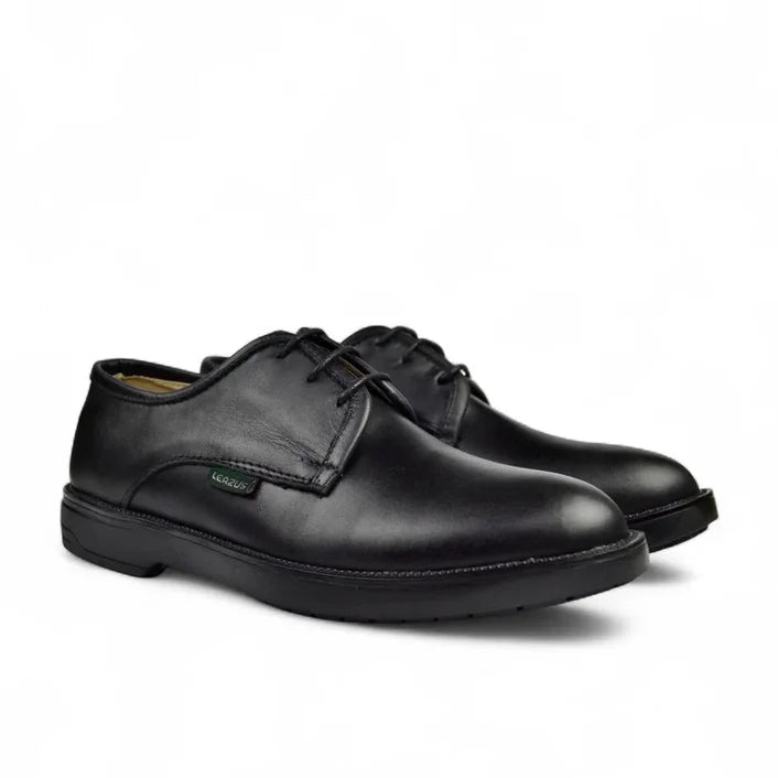 مصنوعة من جلد طبيعي فاخر، تم تصميم هذه الأحذية من نوع ديربي للاستخدام اليومي. تتميز بنعل مطاطي نقي 100% لراحة فائقة ومتانة، جميعها مصنوعة يدويًا لجودة تدوم طويلاً.