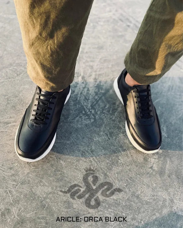 أحذية رياضية جلدية أصلية مصنوعة يدويًا عالية الجودة مع نعل مطاطي وبطانة جلدية طبيعية، تتميز بطانة طبية إضافية من السيليكون لراحة إضافية، مثالية للمظهرين الأنيق والعادي.