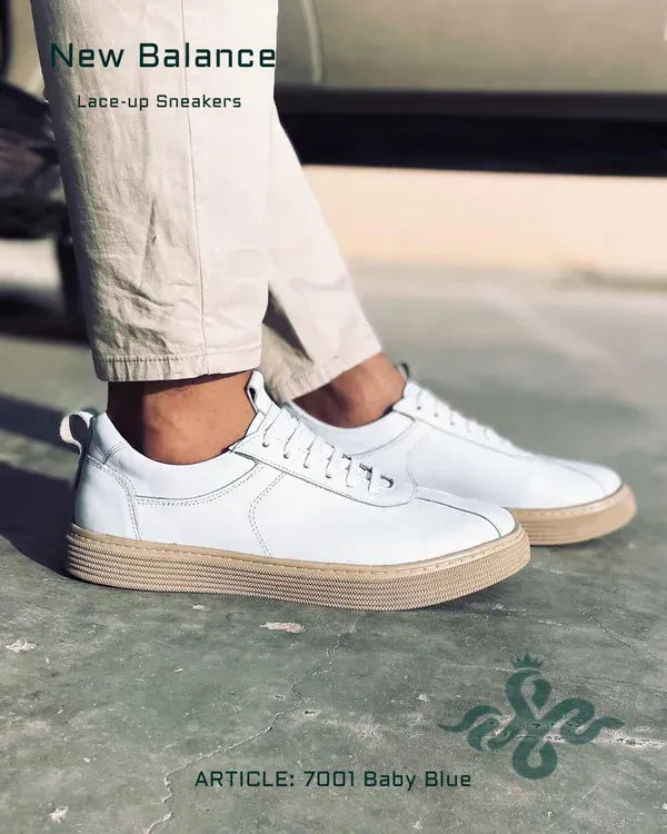 Premium handmade genuine Leather" Lace-up Flat sneakers with a rubber sole and natural leather lining, Durable sole stitching, Perfect for both smart and casual looks.