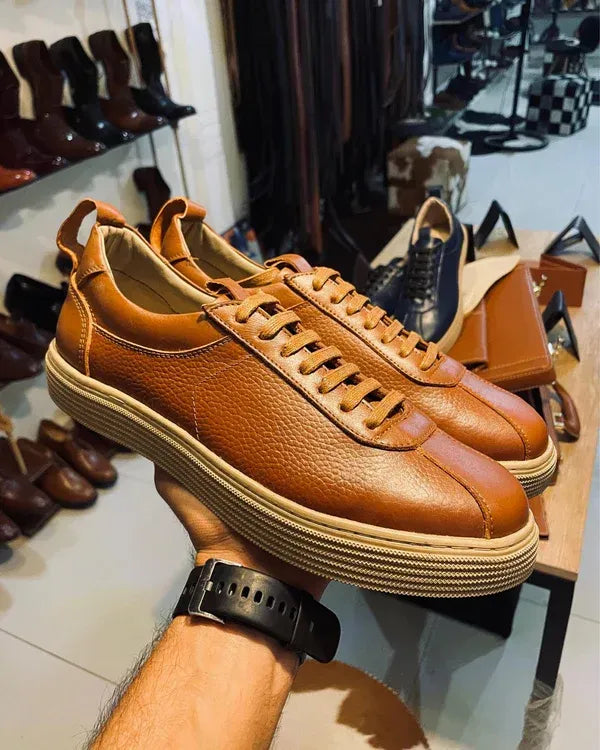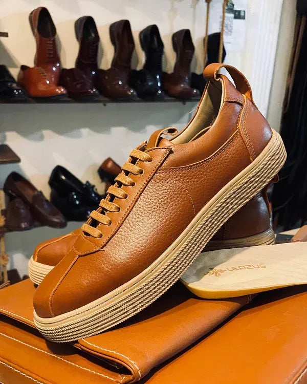 Premium handmade genuine Leather" Lace-up Flat sneakers with a rubber sole and natural leather lining, Durable sole stitching, Perfect for both smart and casual looks.