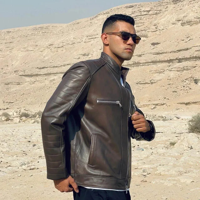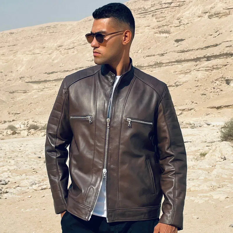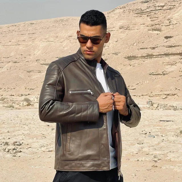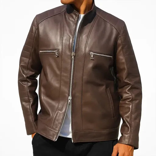 A modern handmade ribbed zip-up jacket crafted from top-grade genuine lamb leather, delivering a bold casual look with exceptional durability. Finished with a waterproof inner layer, premium zippers, and practical multi-pocket interior design.