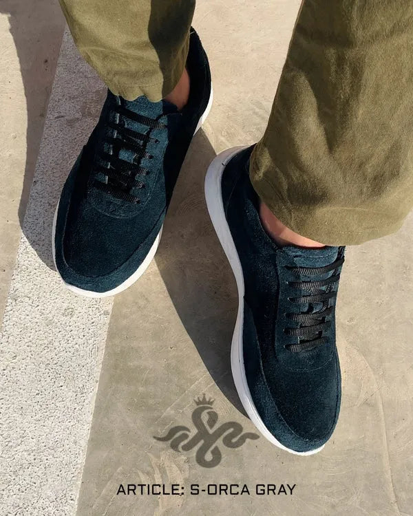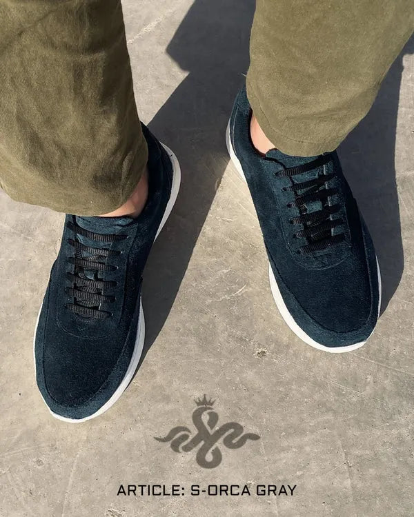 High-quality handmade genuine suede" sneakers with a rubber sole and natural leather lining, featuring an additional medical silicone lining for added comfort ,perfect for both smart and casual looks.