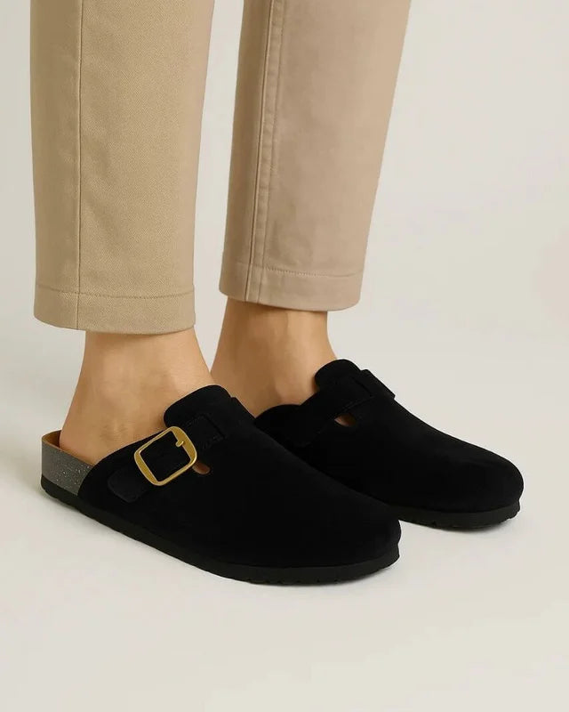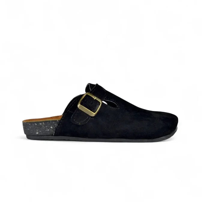 Handcrafted from premium natural Suede leather, the SnapClog features a stylish side buckle for easy slip-on functionality. Built with a Rubber outsole and a contoured insole for foot support, it’s the perfect blend of comfort, modern flair, and timeless elegance.