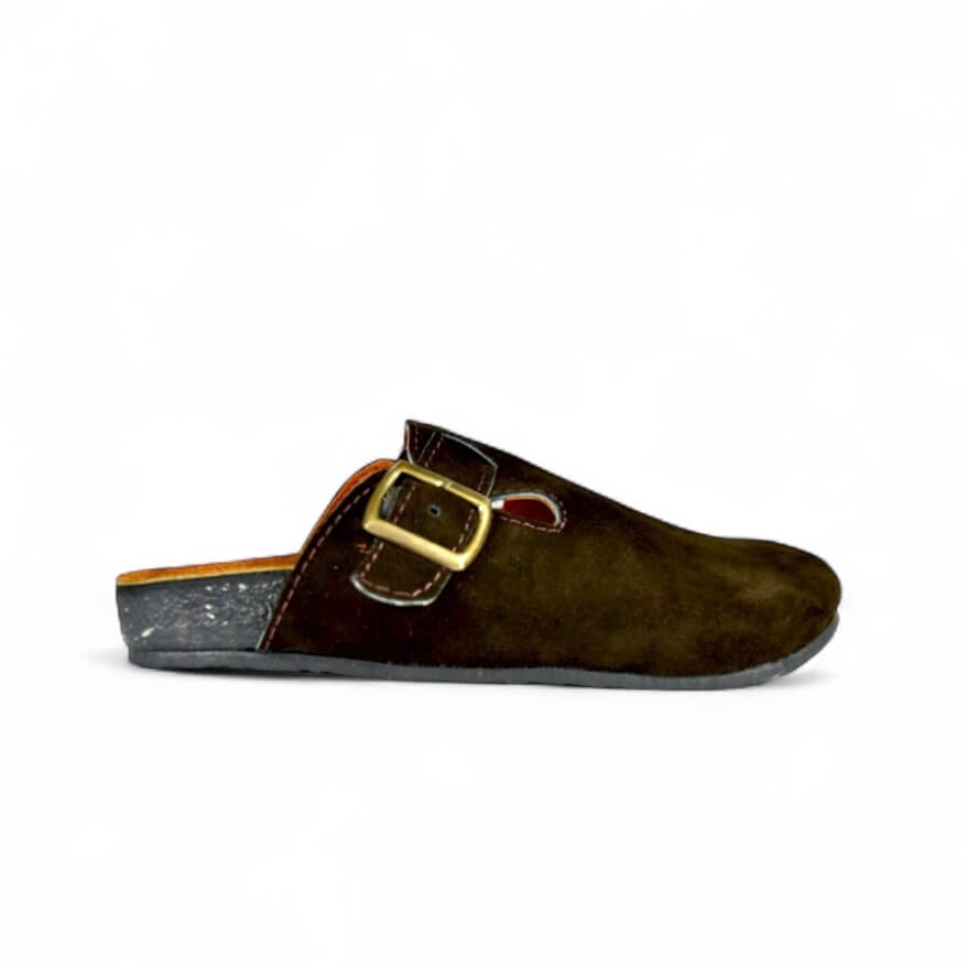 Handcrafted from premium natural Suede leather, the SnapClog features a stylish side buckle for easy slip-on functionality. Built with a Rubber outsole and a contoured insole for foot support, it’s the perfect blend of comfort, modern flair, and timeless elegance.